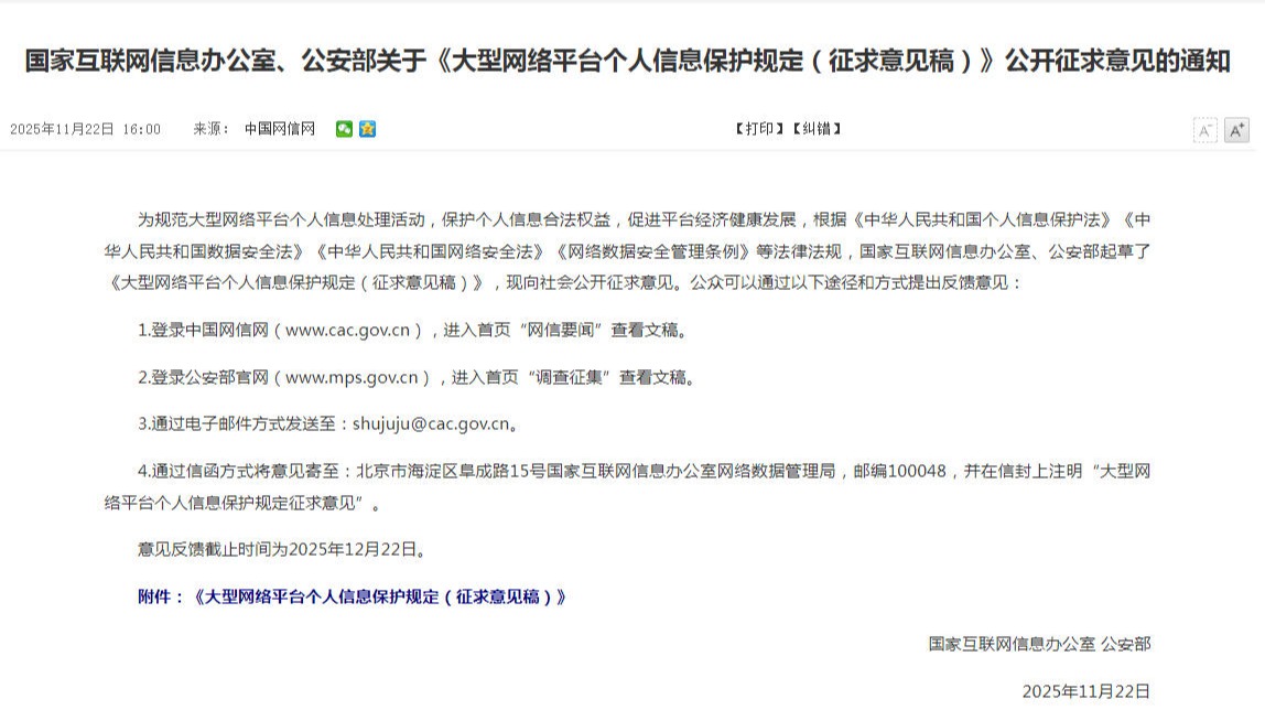 日前,国家网信办、公安部起草《大型网络平台个人信息保护规定(征求意见稿)》,向社会公开征求意见。根据征求意见稿,大型网络平台服务提供者应按照法律法规有关规定指定个人信息保护负责人,并公开个人信息保护负责人的联系方式。